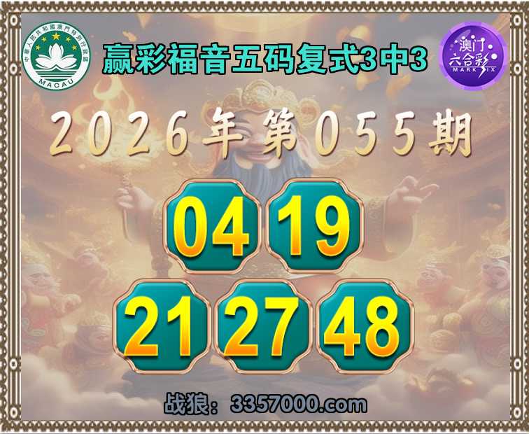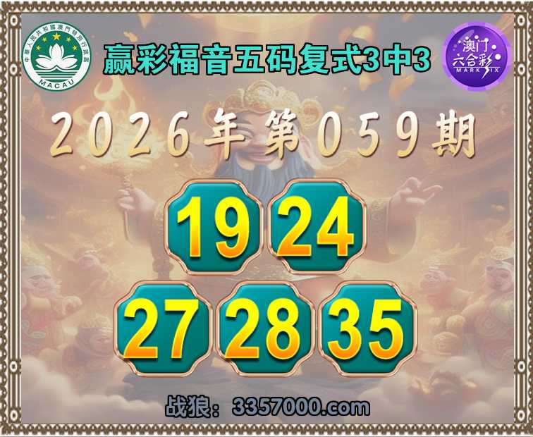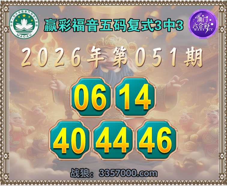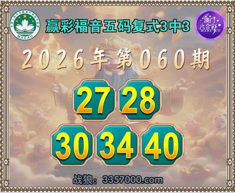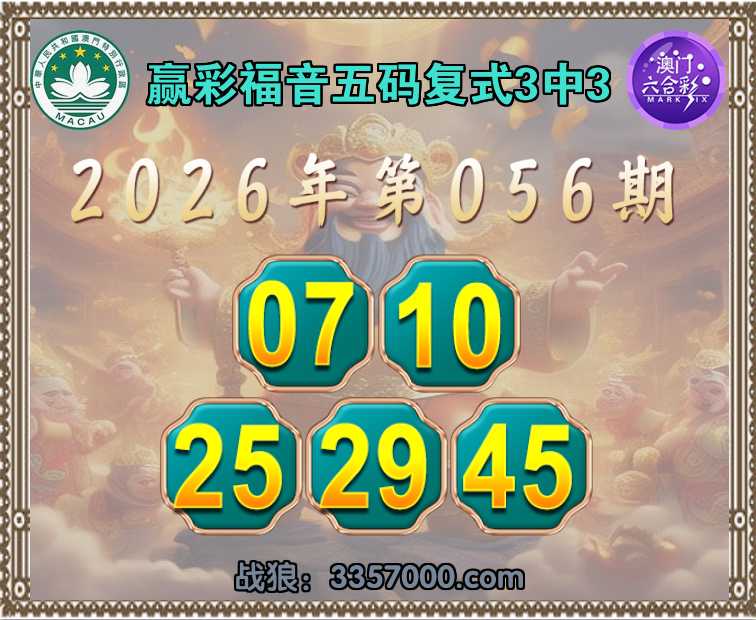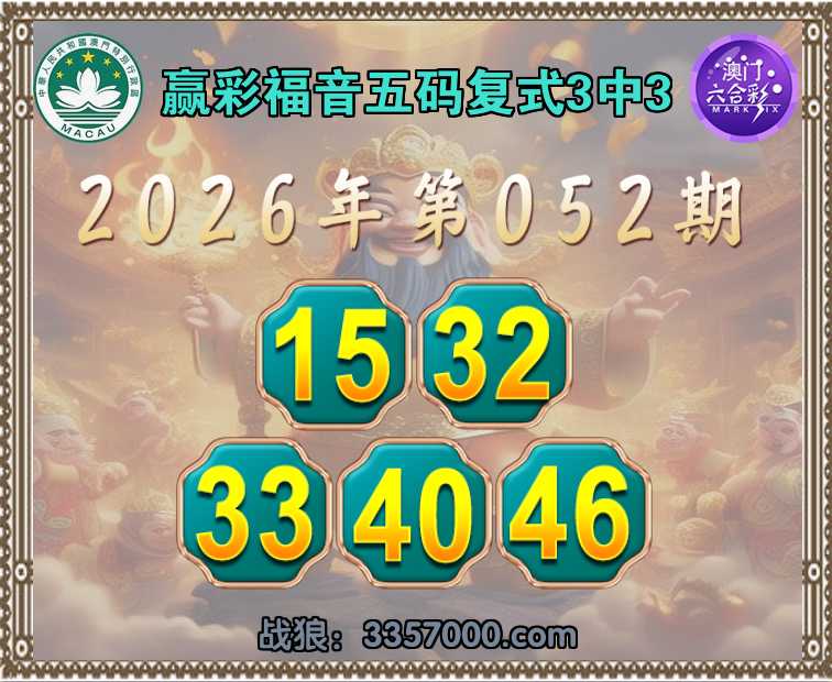 061期:赢彩福音【五码复式3中3】完美中奖